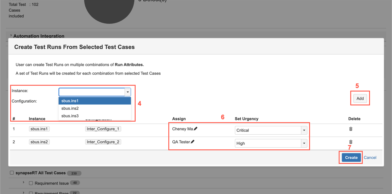 2.5: Click 'Create' button, wait until corresponding Test Runs are created for each combination.