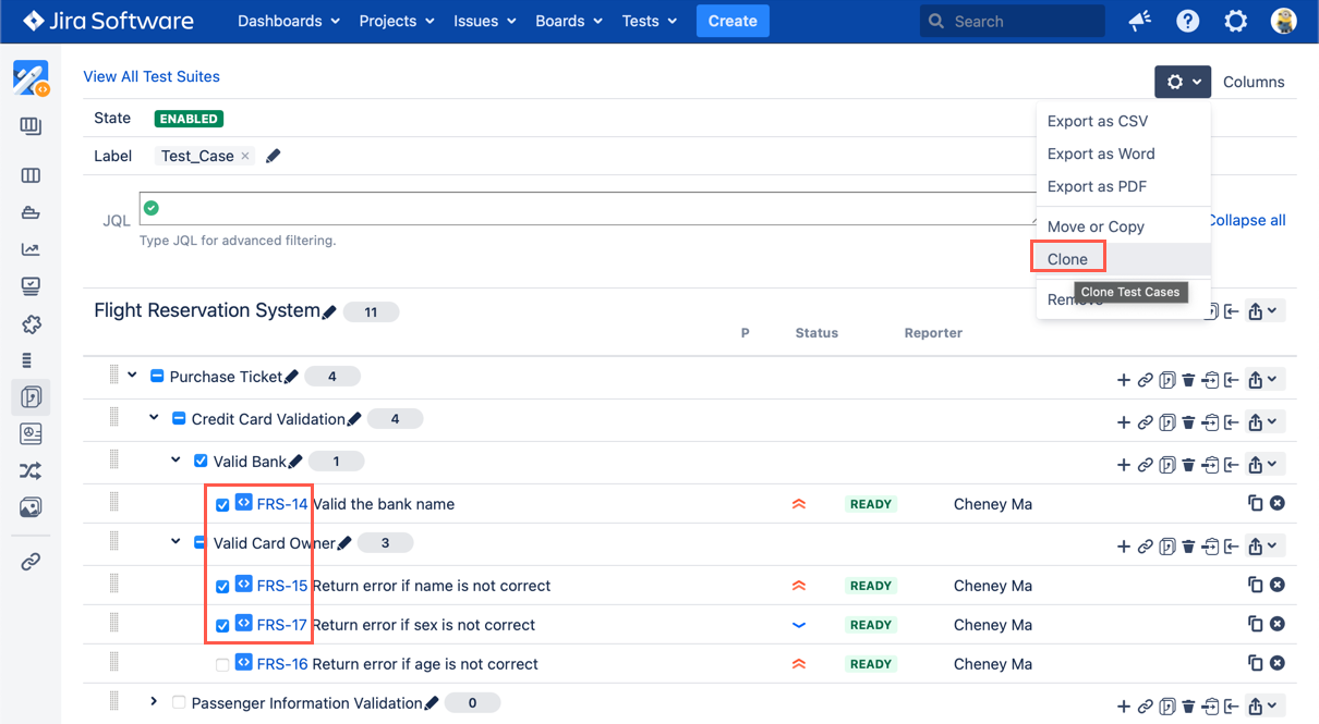 To clone multiple Test Cases from different Test Suites, follow these steps: