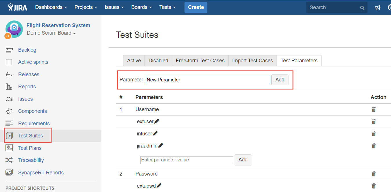 Before a test parameter can be used in any test case, the test parameter and its values must be defined. To define a test parameter, please following the below steps: