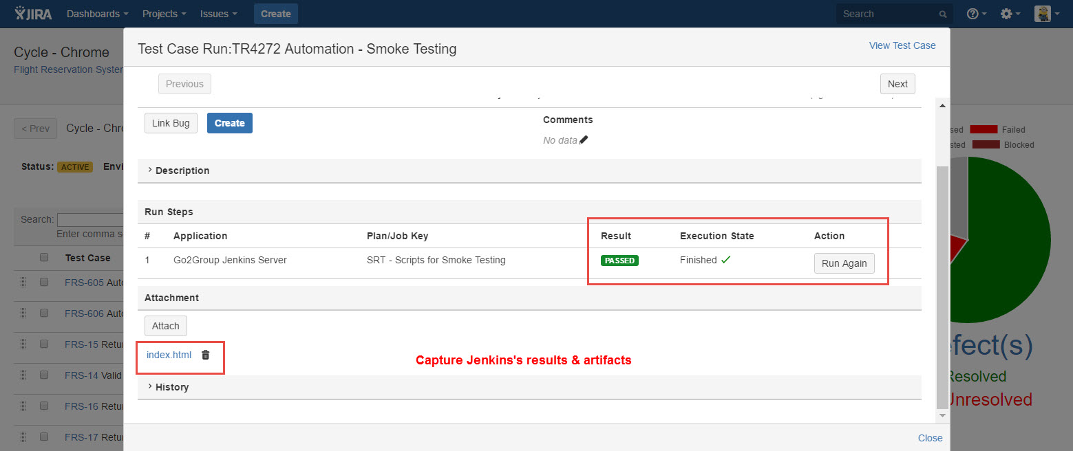 Once the automation run is started, TestRay triggers the appropriate build and captures its results & artifacts back to Test Case Run.