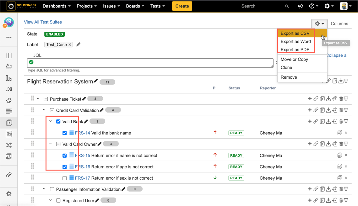 Export Test Cases from different Test Suites