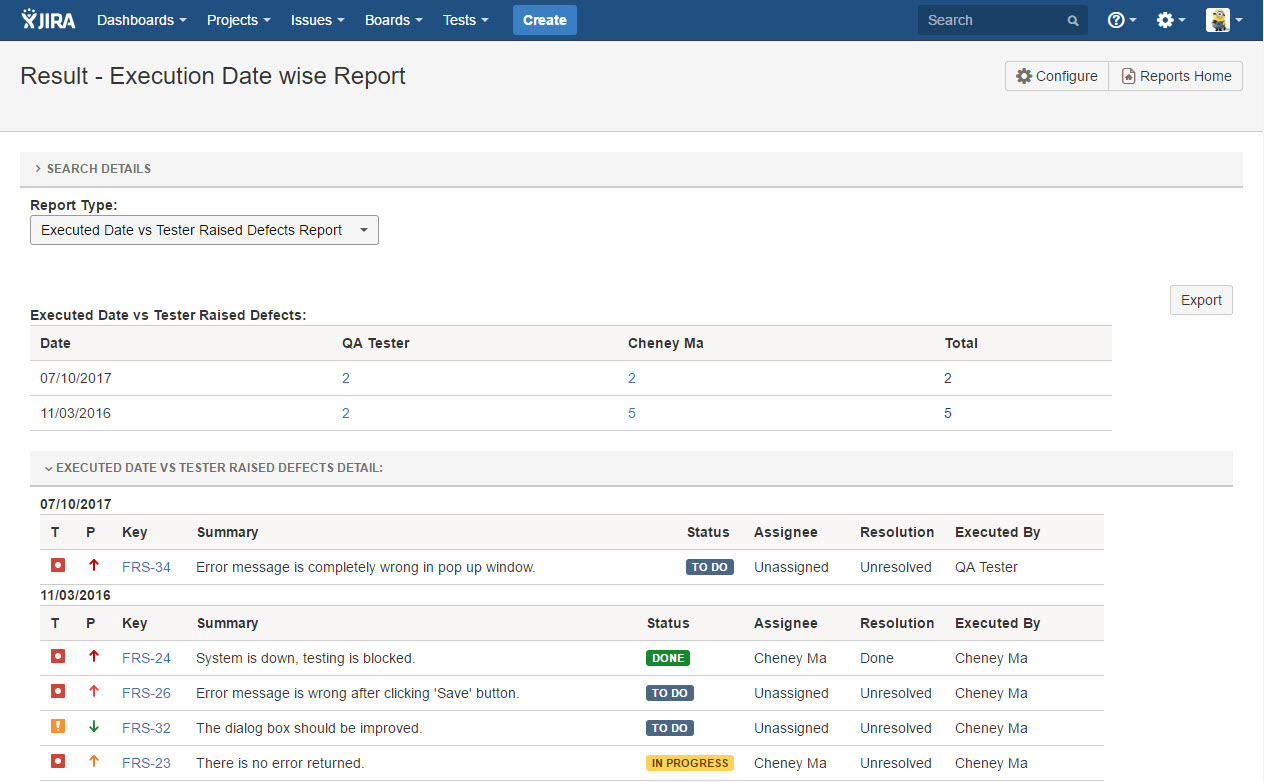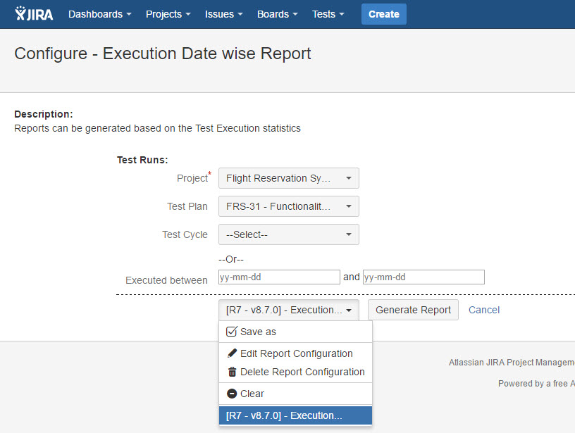 Generate Execution Date wise Report
