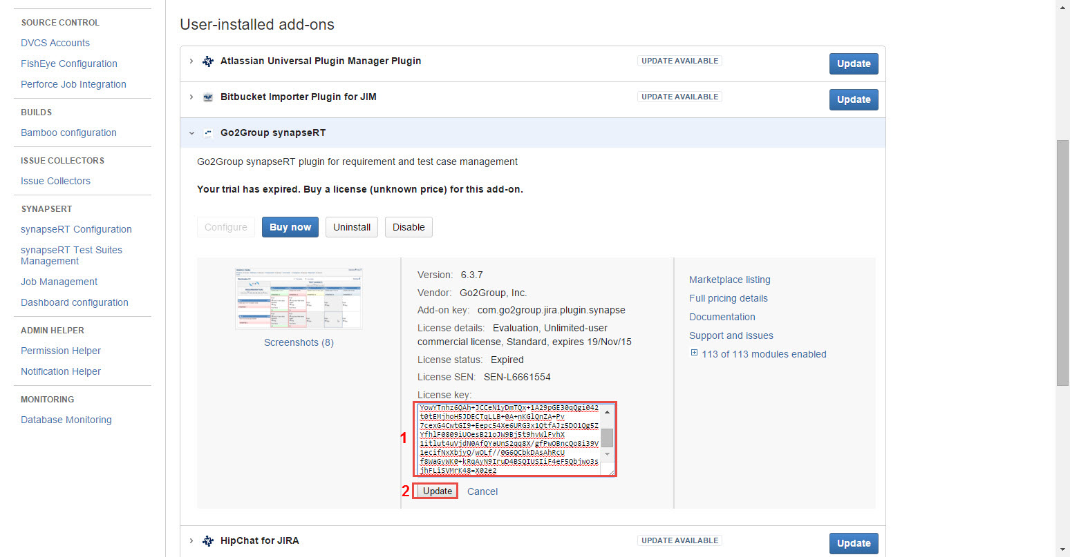 Steps to add a license key in Jira