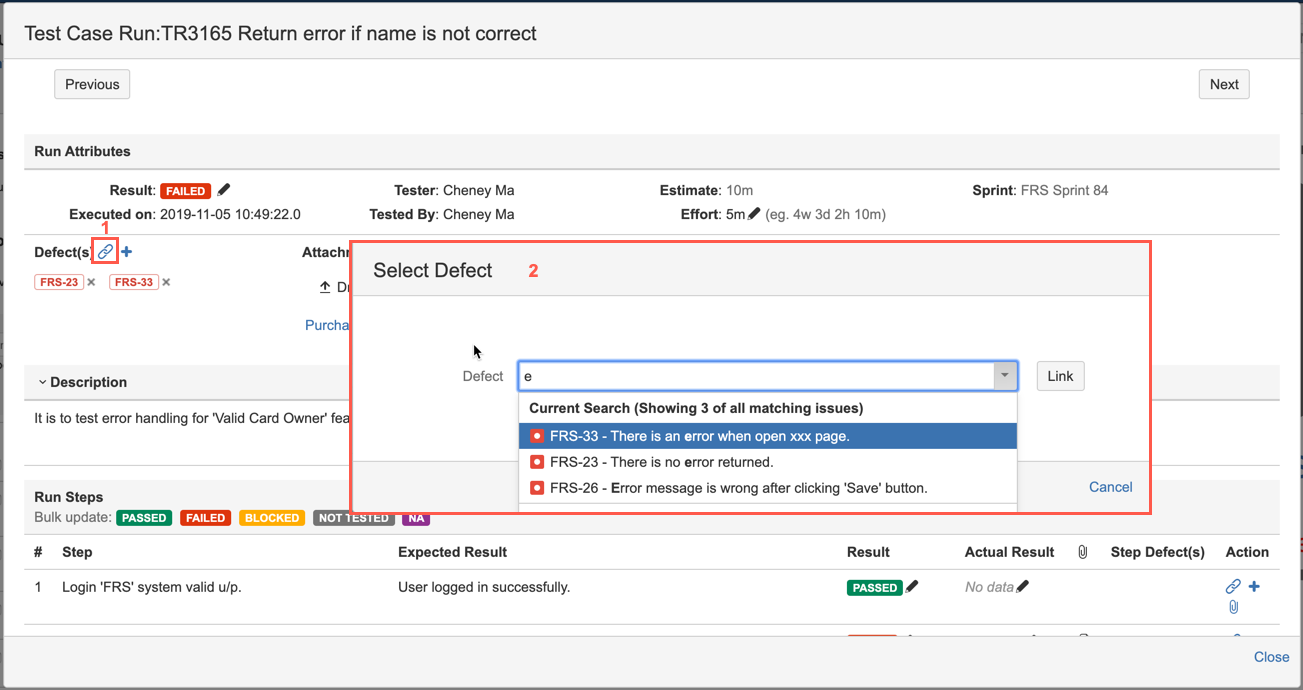Link Existing Defect to Test Case Run