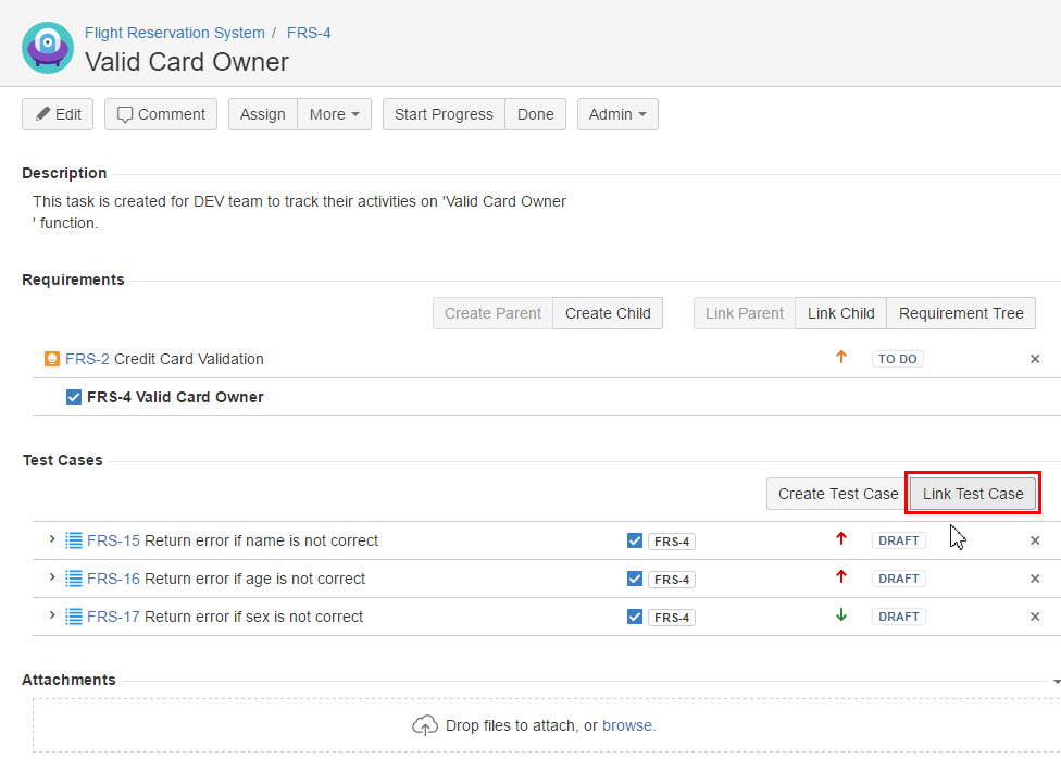 Link Existing Test Case to Requirement