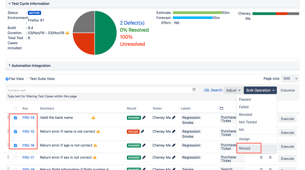 - Open a Test Cycle which is in 'ACTIVE' status