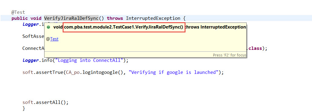 TestCase1 class has one automation test: VerifyJiraRalDefSync()