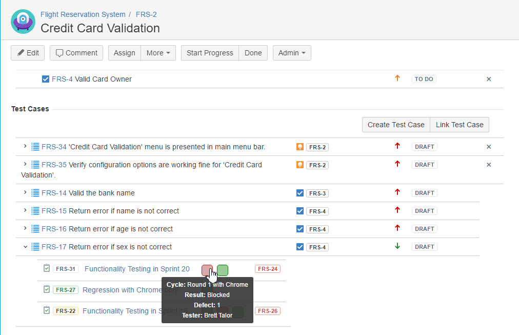- All defects raised from associated Test Cases will be listed in this section.