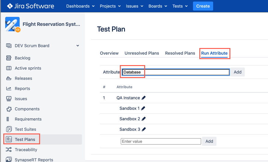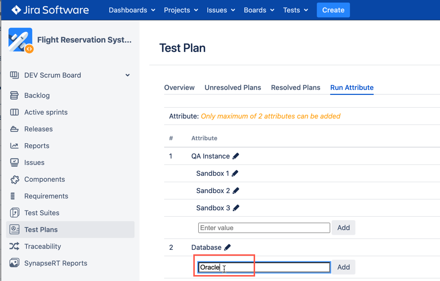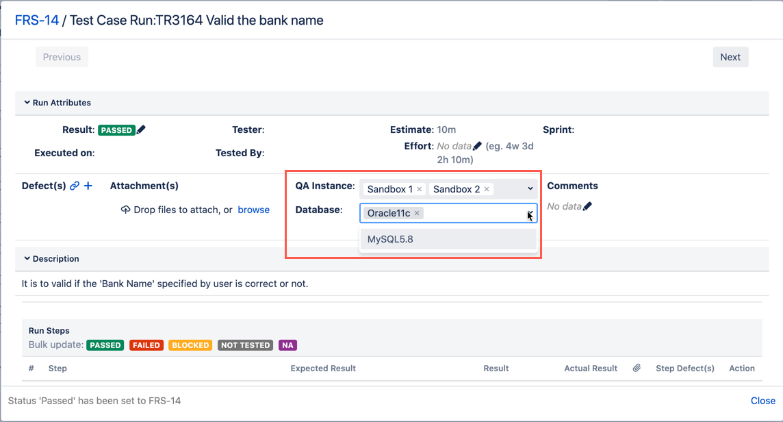 Once the run attribute is defined in 'Run Attribute' tab, the defined run attribute will be visible in any Test Run from this project. Tester can set the values as additional execution information during test execution.