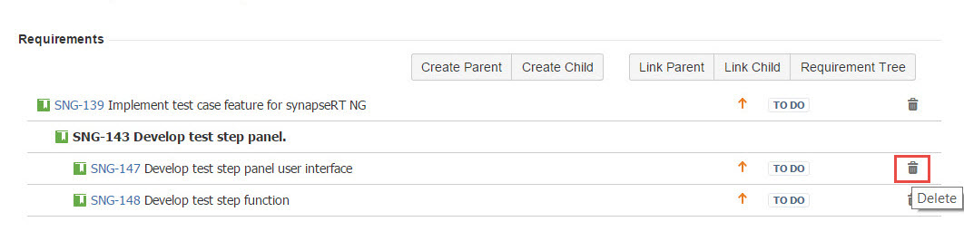 You can also break the established relationships in Requirements by following these steps: