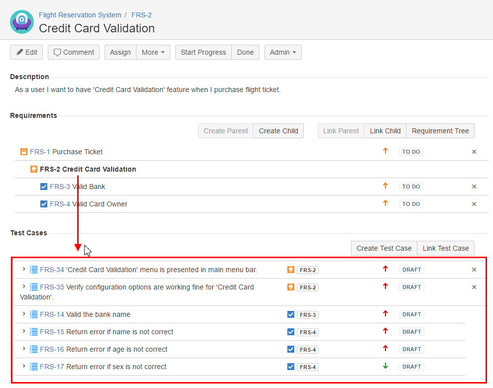 Map Test Case to Requirement to indicate the test coverage for a particular Requirement.
