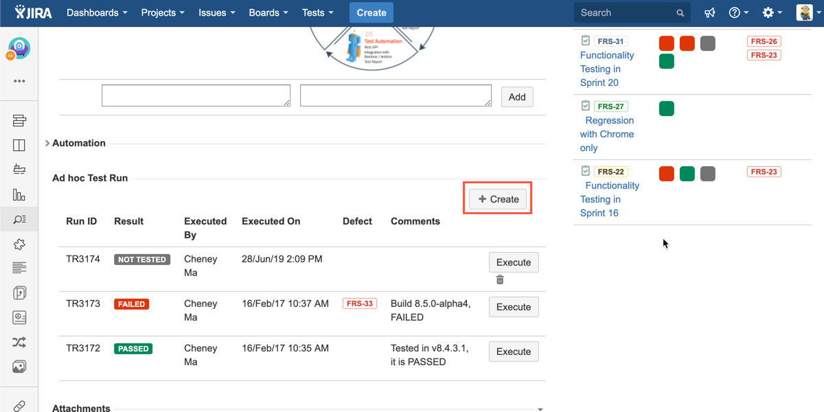 5. Once the test execution is done, the result will be recorded to this Test Case.