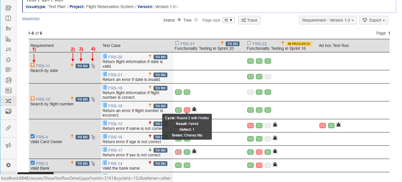 Note: Parent Requirement will display the Test Cases and Defects aggregated from all its children (Requirements).