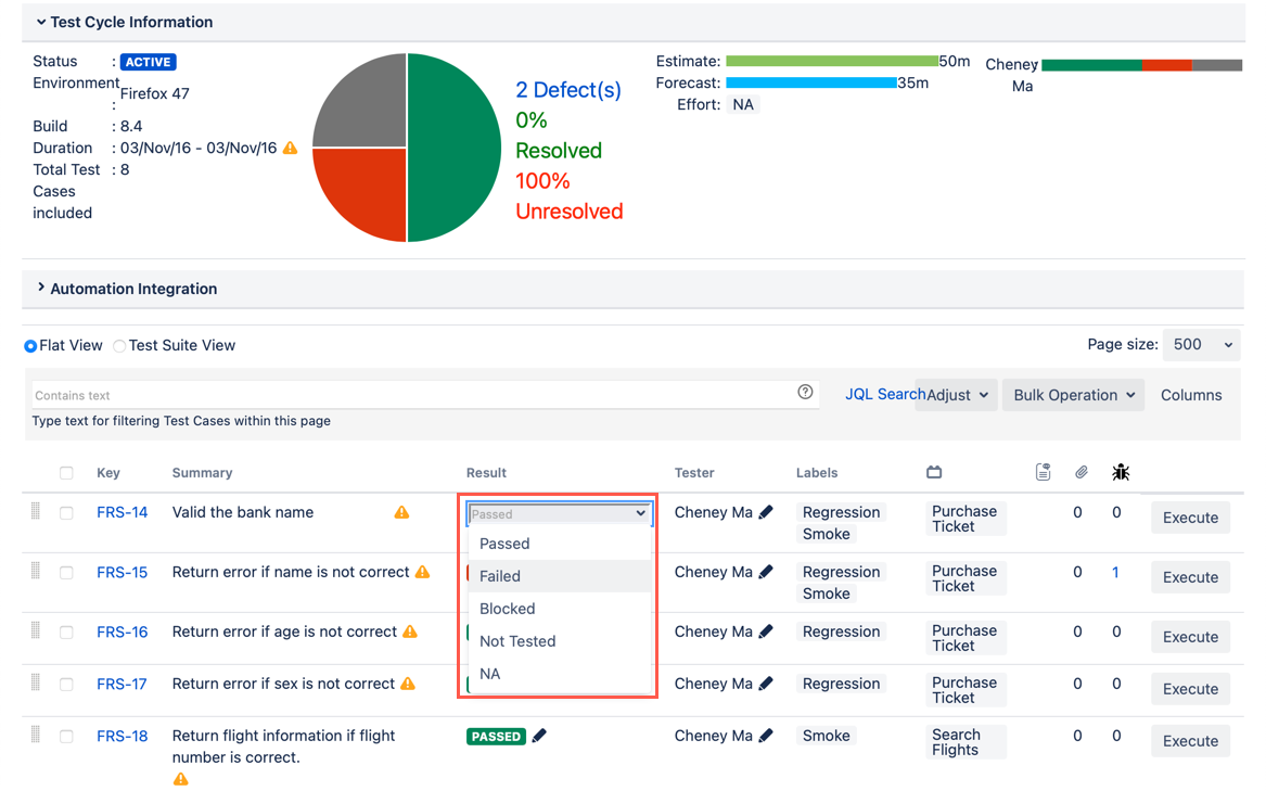 You can either update Test Case Run Result individually or use "Bulk Operation" to update result on multiple selected test cases.