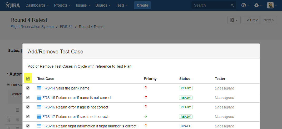 A 'Select All' checkbox is added for user to select all Test Cases when a Test Cases in a Test Cycle