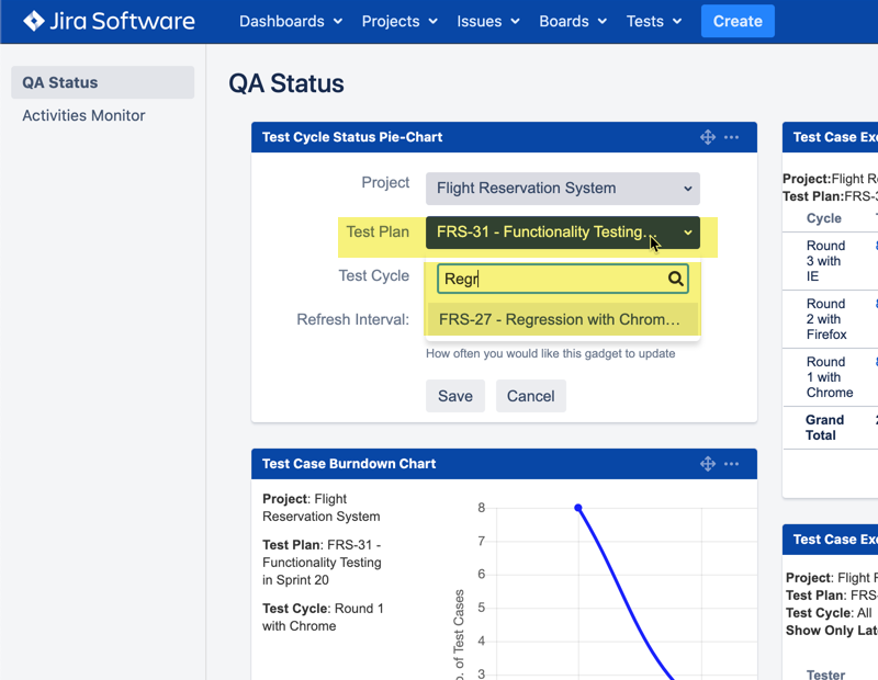 - Introduce 'Search' function for Test Plan issue (and Test Cycle) in any gadget, it saves time if you want to pick one from a bunch of Test Plan issues.