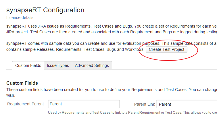 The synapseRT Configuration page will have the configuration created for you. But you have the option to edit the custom fields and issue types assigned to synapseRT.