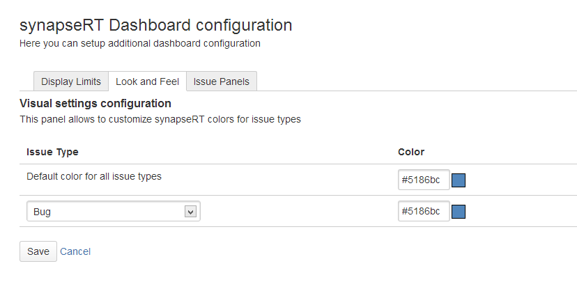 synapseRT comes with a default configuration for all the above issue types. But you can also configure the plugin to use issue types of your preference.
