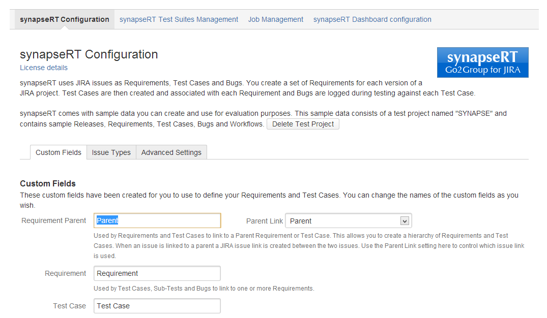 Go2Group synapseRT leverages JIRA 6's architecture, including Google Gadgets and custom issue types, allowing all test management activity to be captured within JIRA.