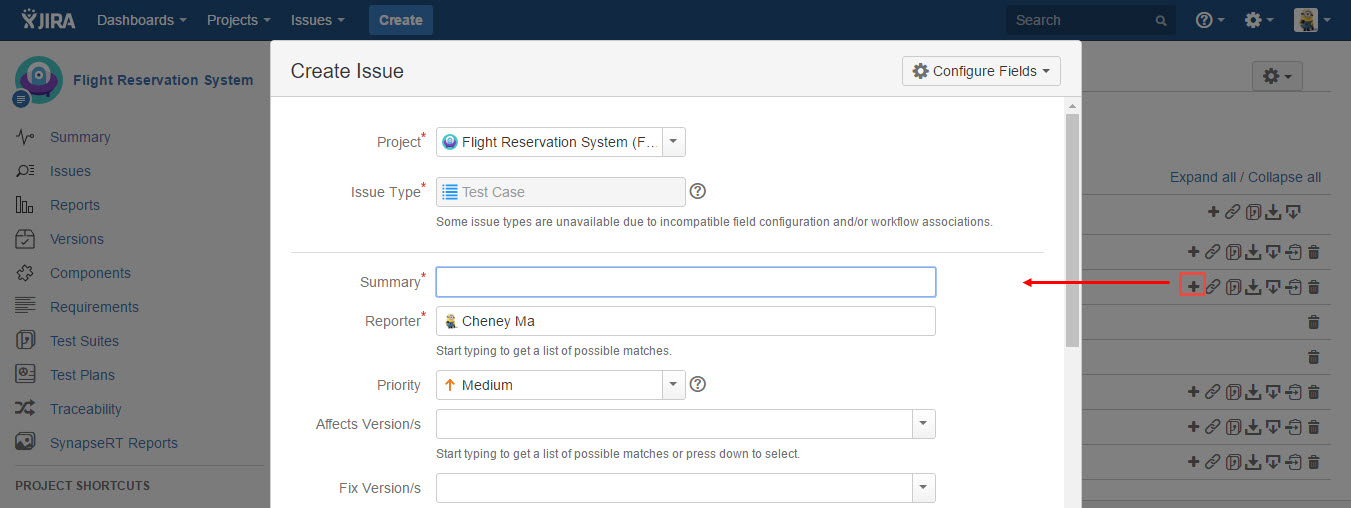 - Click the "Add Test Case" icon from any Test Suite in the tree structure
