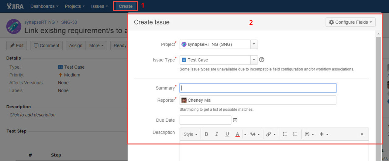 Creating Test Case from JIRA