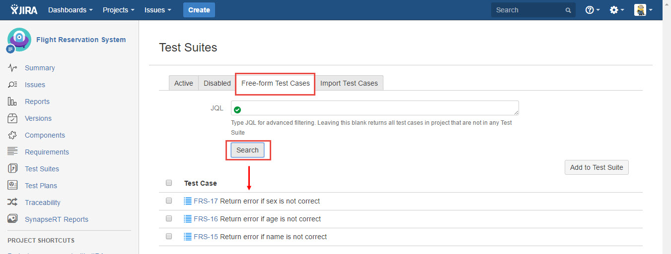 To find Free-form Test Cases, follow these steps: