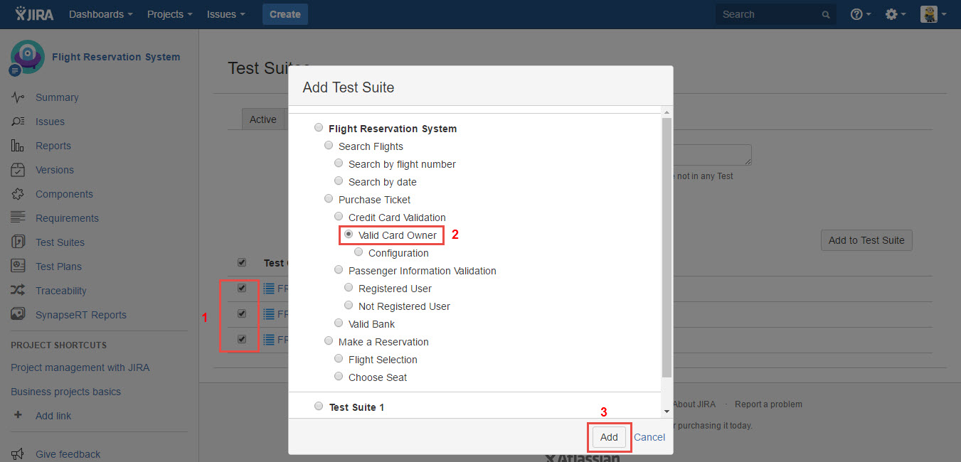To associate Free-form Test Cases to any existing Test Suite, follow these steps: