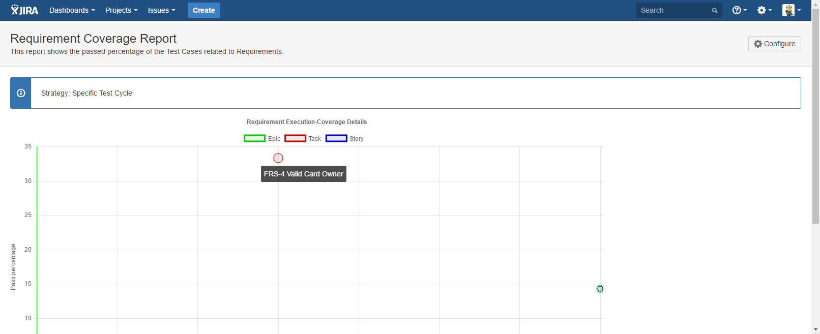 This report shows the passed percentage of the Test Cases related to Requirements.