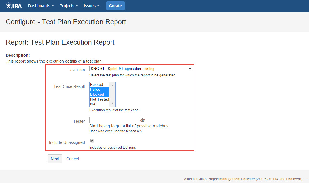 [Screenshot - UG0062_Test_Plan_Execution_Report_Configuration]