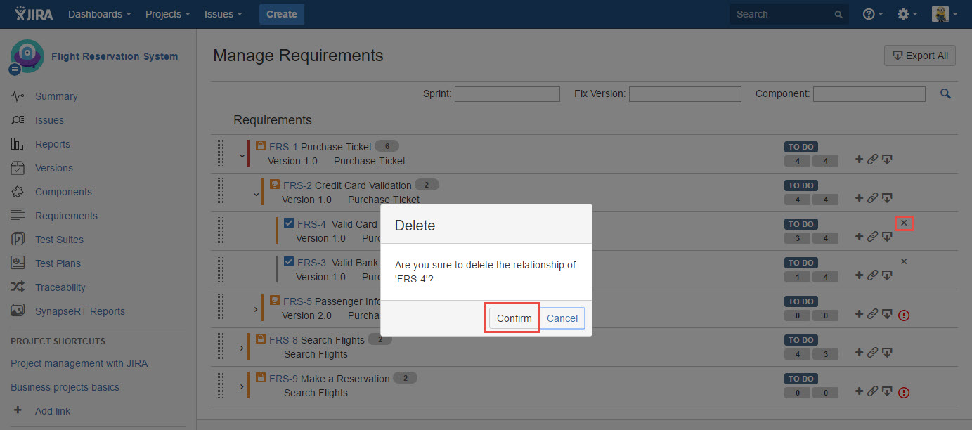 Note: It is not allowed to remove a requirement with child requirements associated. You are allowed to remove it only after all its child requirements are cleaned up.