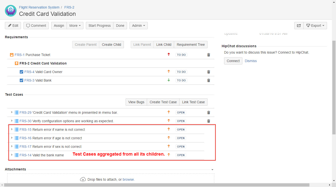 Please note that parent Requirement will display the Test Cases aggregated from all its children (Requirements), Test Cases from its children cannot be removed from the parent Requirement.