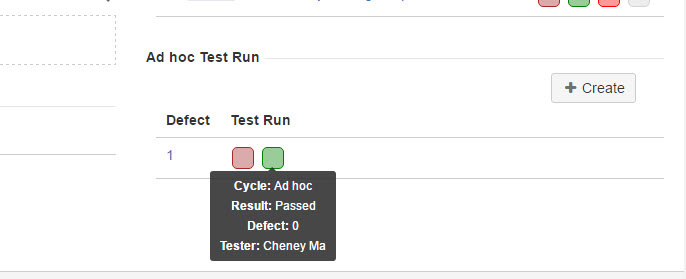 - From "Add hoc Test Run" section which is located at the right side of the page, click 'Create' button
