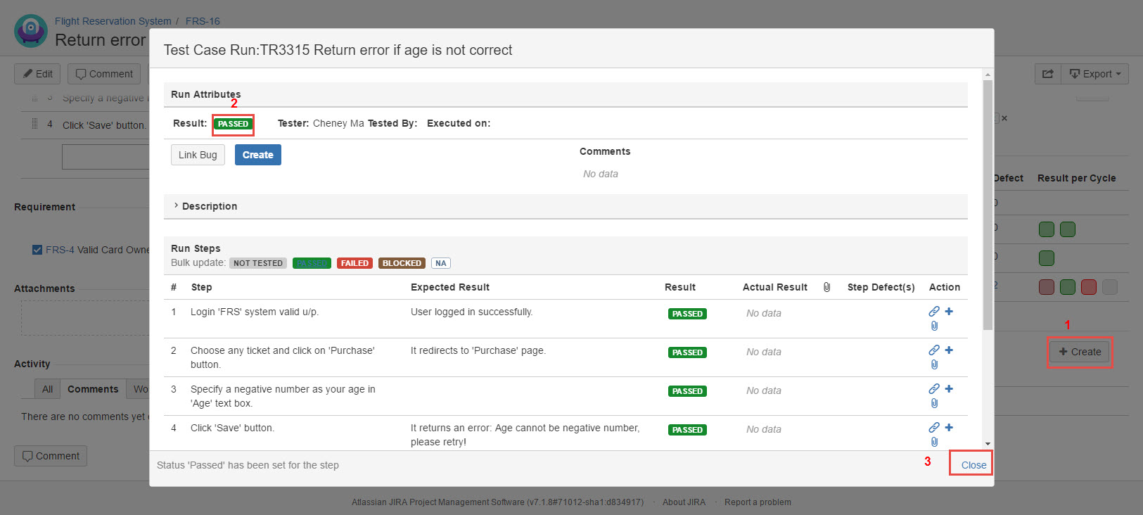5. Once the test execution is done, the result will be recorded to this Test Case.