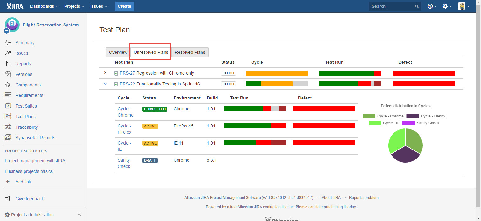 This tab presents the list of Unresolved Plans in the Project. These are the plans that are yet to take a Resolution value, i.e. not yet reached an end status in the workflow. These are typically the plans in which the work is in progress.