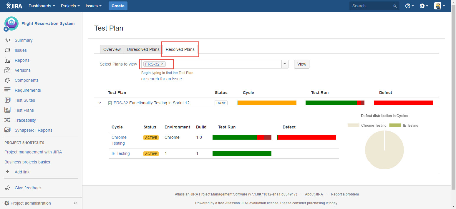 Test Plan Summary is kind of a dashboard reporting of the Plans in a given Project. You will be able to navigate to this page by choosing your Project from the top menu and then by clicking on the 'Test Plan Summary' link on the left navigation. The main goal of this feature is to bring a quick snapshot picture of the testing progress in a project.