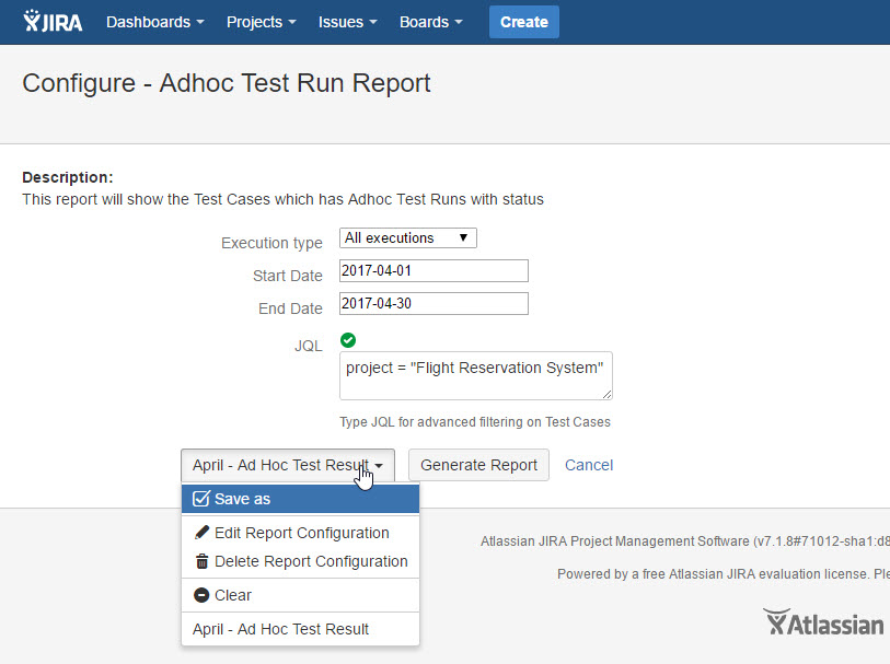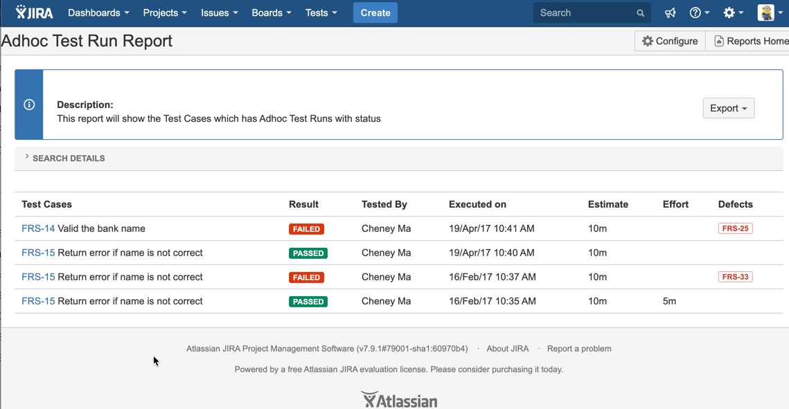 As you can create Adhoc Test Run for Test Case quick execution, this report will show test result from adhoc Test Case executions.