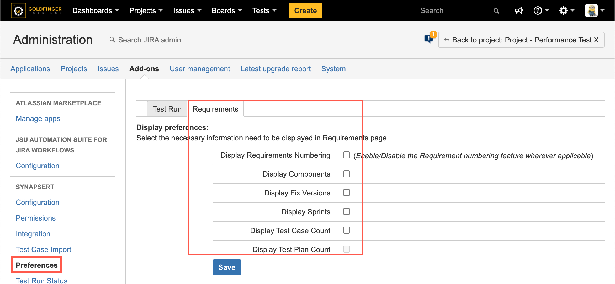 It helps to hide/unhide the following fields which are available for Requirement issues in 'Requirements' page: Requirements Numbering, Components, Fix Versions, Sprints, Test Case Count and Test Plan Count.